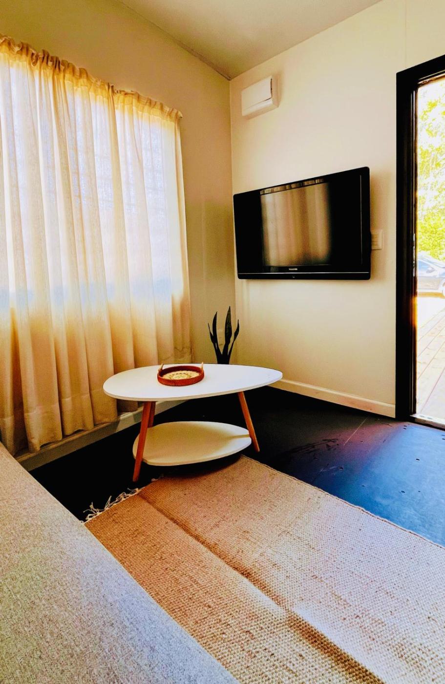 Two-Bedroom House. Featuring a private entrance, this air-conditioned holiday home consists of 1 living room, 2 separate bedrooms and 1 bathroom with a shower. Guests will find a stovetop, a refrigerator, kitchenware and an oven in the well-fitted kitchen. The holiday home also offers a barbecue. The holiday home provides a dining area, an electric kettle, a sofa, a flat-screen TV with satellite channels, as well as garden views. The unit offers 4 beds.