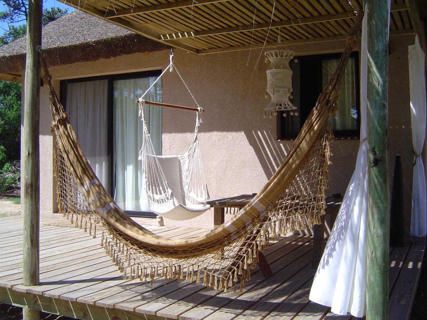 Bungalow (2 Adults). Self-catering bungalow featuring fan and a deck with hammocks and wooden stools. No extra beds can be accommodated in this room. ;